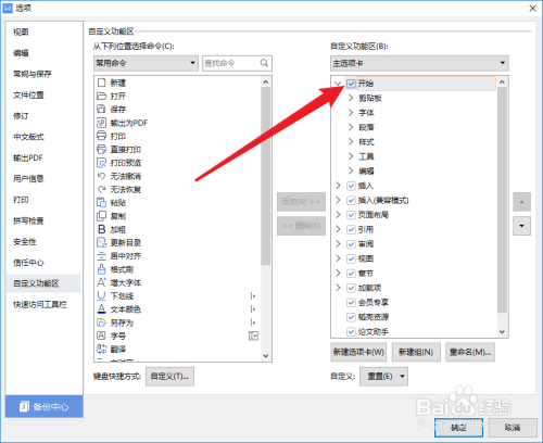 在自定义功能区列表中,将【开启】勾选上。