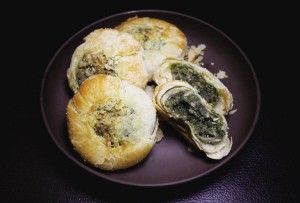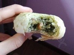 包入苔菜馅,仔细收口,不要让馅料漏出,烤箱预热,上下火,175度,25分钟。