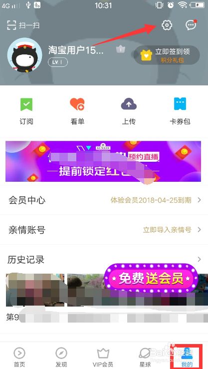 打开优酷,进入“我的”页面,点击右上角的设置图标。