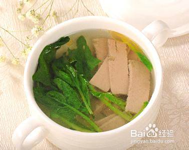 用法:喝汤,食菠菜及猪肝,每日1剂,1次吃完。可长期食用。