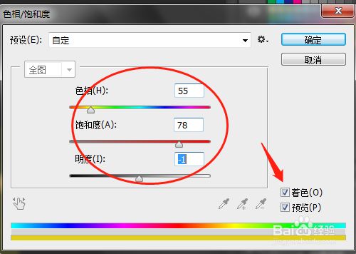 4. 点击图像菜单,调整,色相/饱和度,对话框中如图设置,确定。