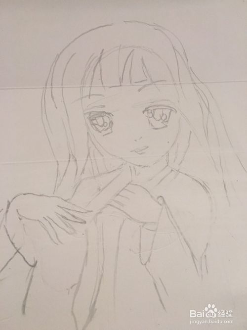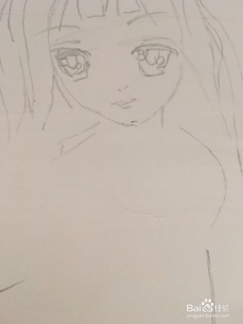 第四步 简单的画上女孩的上半身衣服轮廓线 后续再添画即可