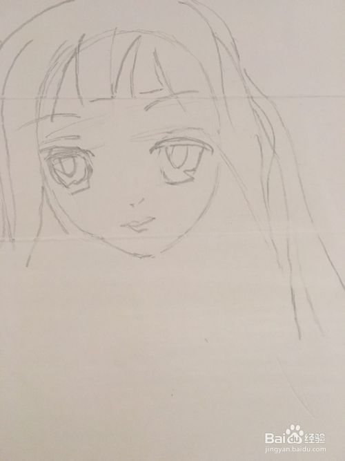 第三步 再画上女孩的眉毛 眼睛 鼻子也就是一点 嘴巴也不突出