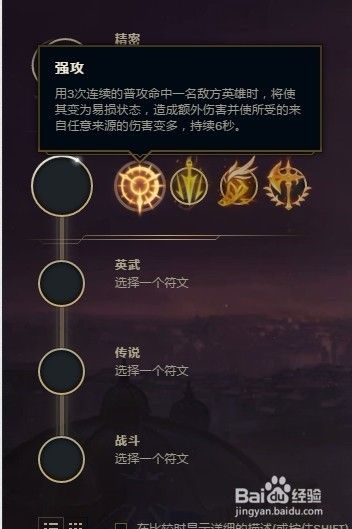 在三个基石里选择“强攻”。三次攻击能打出额外伤害并使对手进入易损状态,提高后续输出,对于攻速高的剑圣非常适合。