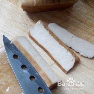 香干切片,斜着下刀更好看。