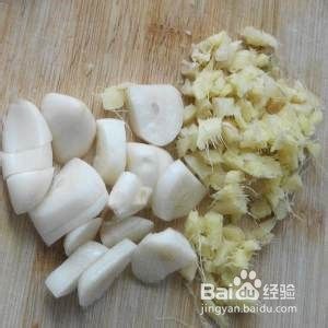 姜蒜切好,姜切沫,蒜切片。