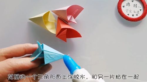 亲子折纸手工:一朵彩色的四瓣花怎么折