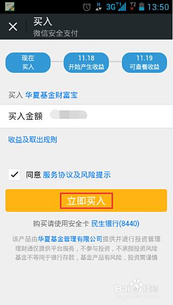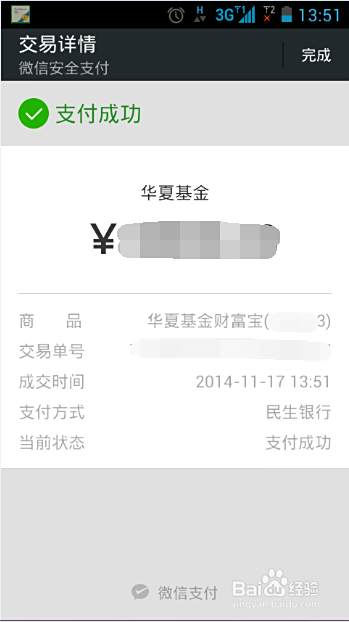 输入买入金额,并点击立即支付,可跳转到微信支付界面,如下图所示。