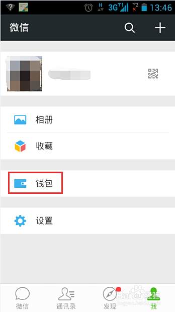 点击微信个人中心的【钱包】选项,进入【我的钱包】界面。如下图所示。