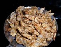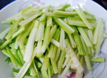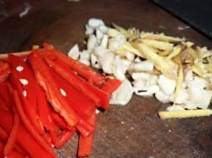 牛肉切丝,切的方法在老杨那学了一招横切牛羊、竖切猪,呵呵现学现卖,谢谢老杨啊用薯粉(因为妈妈家自己做的我们家通常都是用薯粉来嫩肉)、盐、黄酒、生抽、胡椒粉拌均淹2分钟备用。