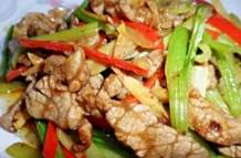 最后下爆好的牛肉跟西芹翻炒几下起锅装盘。