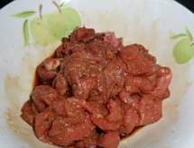 把淹好的牛肉过热油快速的窜一下,捞起备用,这样的牛肉保准嫩。