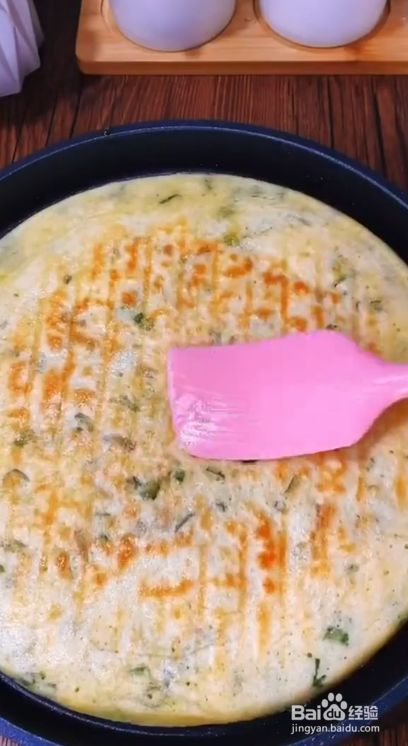 最后起锅预热,倒入面糊摊平均匀,淋上食用油盖上盖子烙两分钟翻面继续烙两分钟即可出锅