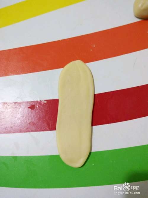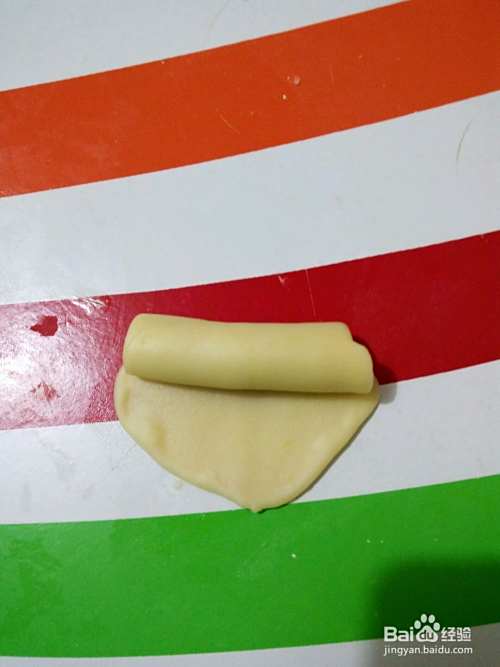 取一个油皮擀成中间厚两边薄 放一个油酥包起来 口收在下面