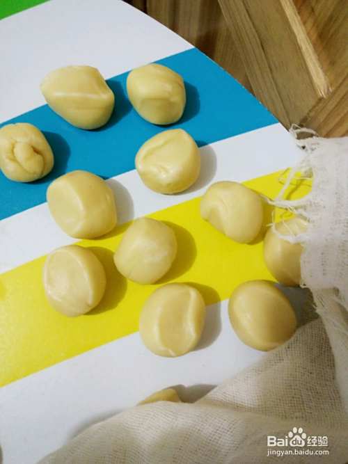 放盘子里冷藏1小时或冷冻20分钟 只要不怎么粘手就行 再分割成15份备用