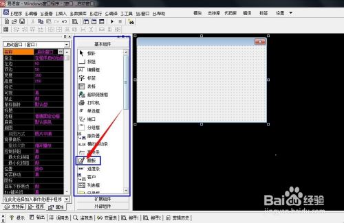 进入“Windows窗口程序”设计窗口后,在组件箱中找到“画板”组件,可能很多新手朋友不知道哪个是画板组件,如图: