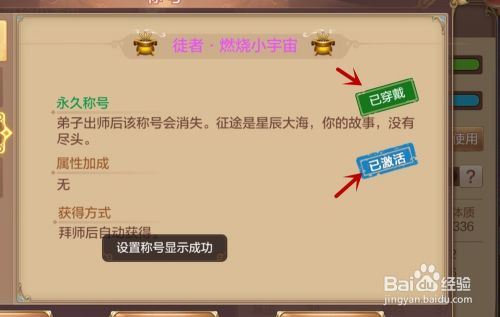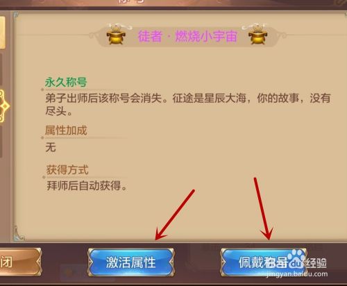 然后我们在下方点击【激活属性】或者【佩戴称谓】,即可将称谓激活相应的属性或者佩戴成功,如图所示。