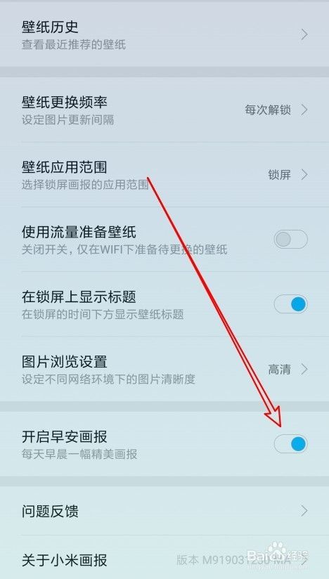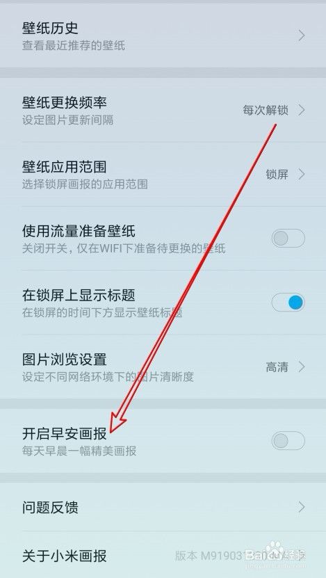 接着在打开的页面中找到开启早安画报设置项