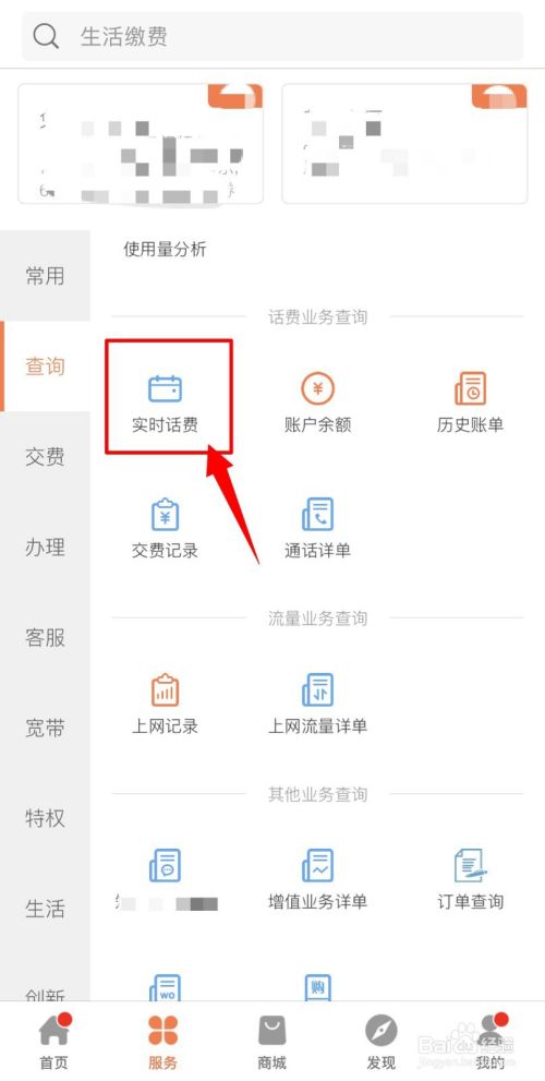 进入中国联通APP后,点击【服务】-【查询】-【实时话费】;