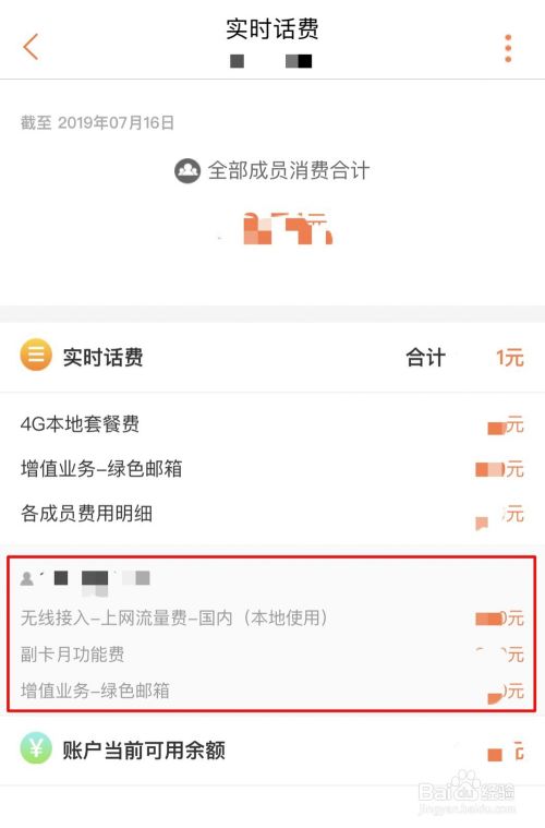 在实时话费页面,有副卡月功能费,即可看到副卡消费情况。