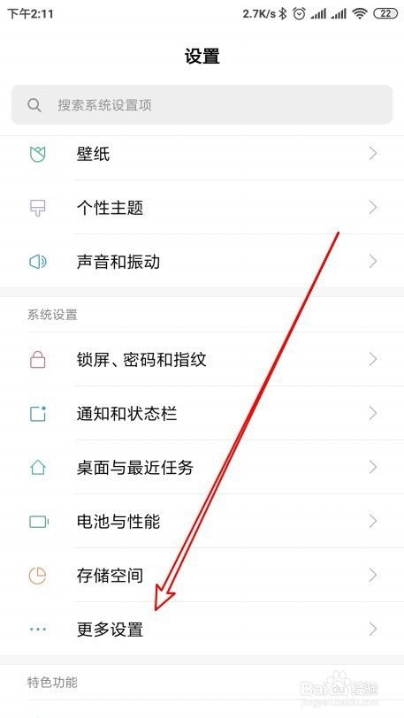 在打开的红米手机设置页面中点击“更多设置”的菜单项。