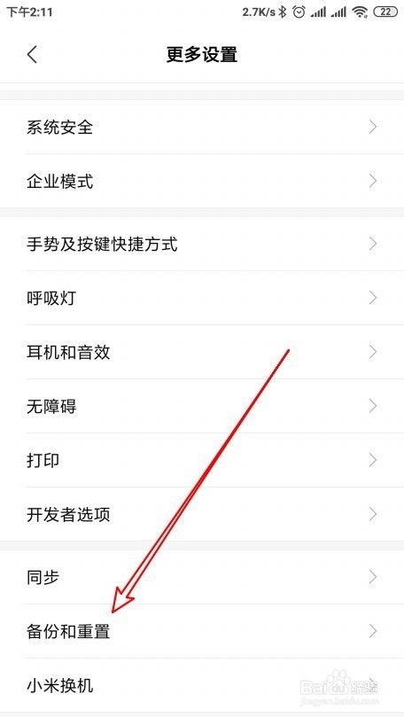 接下来在打开的更多设置的页面中点击“备份和重置”的菜单项。
