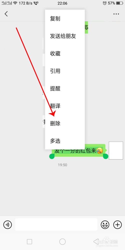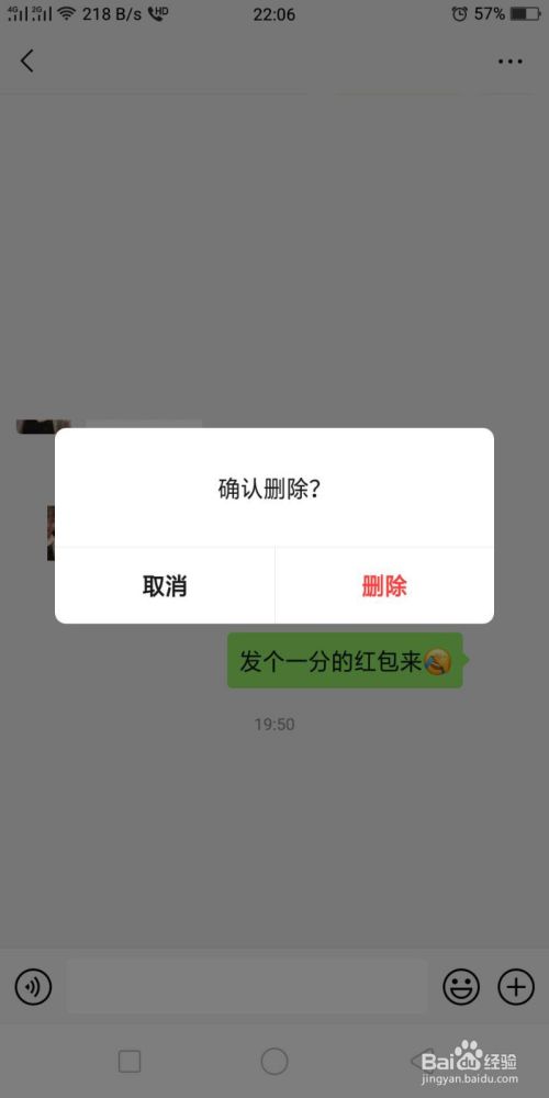 6.最后点击【删除】就可以进行单发面的撤回,想双面撤回只有等微信更新出这种功能了