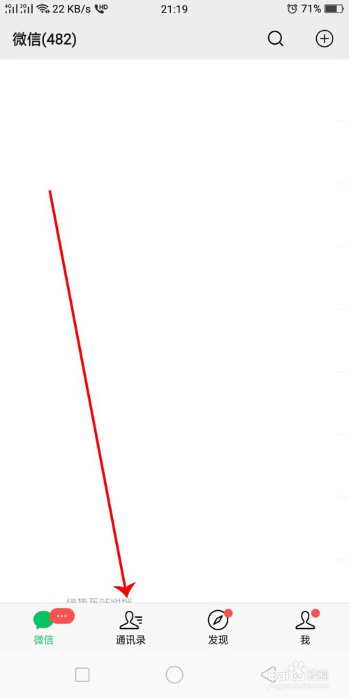 进入微信以后点击【通讯录】,如下图所示。