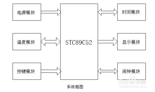 所设计的系统结构往往决定着元器件的选择,考虑到性能、稳定、功耗及其电路设计特点。本设计决定采用单片机STC89C52作为主控制系统,采用LCD12864液晶显示屏作为显示模块将最终数据提供给用户,时钟模块采用DS1302时钟芯片连接AT89C52以完成时间的计算功能,温湿度采集采用的是传感器DHT11芯片,采用3~5V直流电源为单片机及其他芯片完成供电,从而实现多功能万年历的功能。