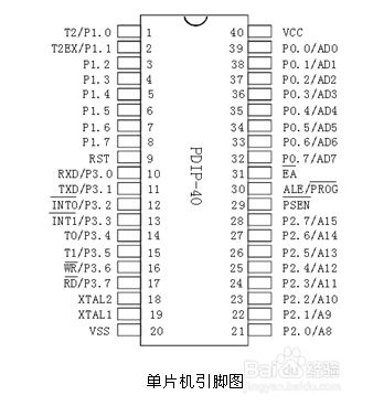 STC89C52是一个拥有40个引脚的微处理器,下面将对本设计所涉及到的端口进行详细说明。