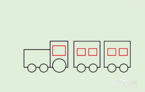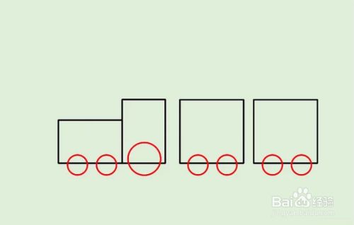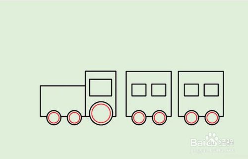 在图形底部画几个圆形作为轮子,第三个轮子要比其它轮子大些。