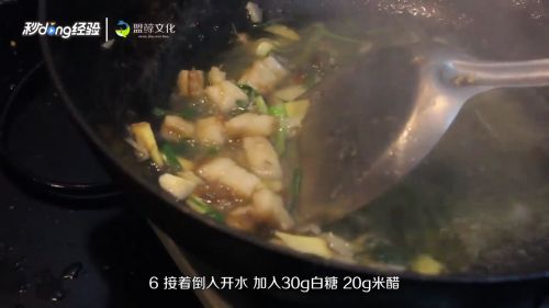 5倒入开水,加入30克白糖,20克米醋,适量的盐和白胡椒粉,将煎好的带鱼放入。