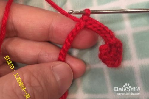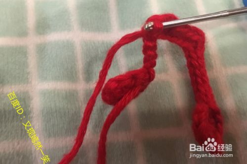 然后拉1个辫子针,再在下一个里山里国足2个短针,再顺次钩织3个短针,再在下一个里山钩织2个短针,然后拉1个辫子针。