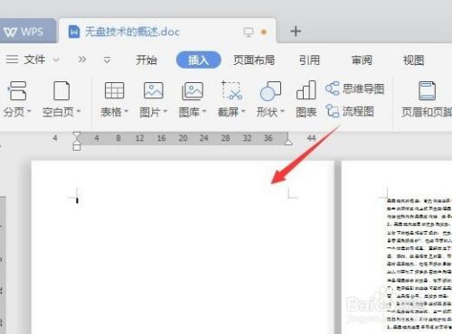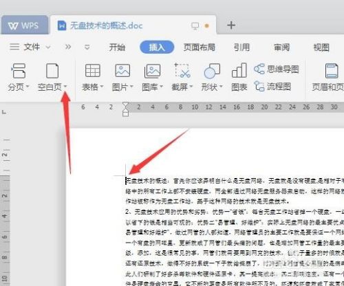 如果要在当前页面的前面插入空白页,则将光标定位在首行前,再点击功能区中的空白页。