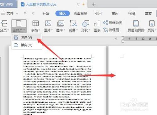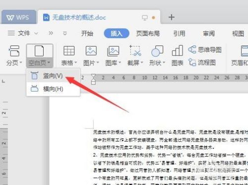 在弹出的项目中点击竖向,则会在当前页面前插入纵向的空白页。