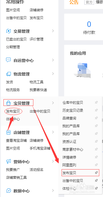 找到我们菜单栏左侧“宝贝管理”--发布宝贝