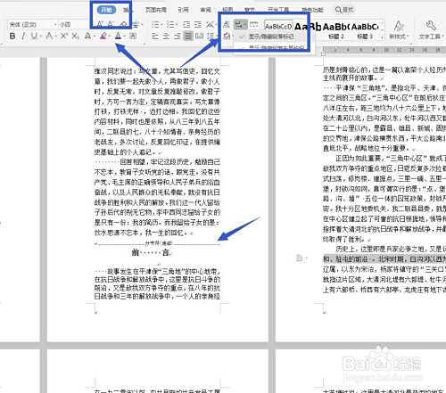 在下图中,我们可以看到前言部分排在下方,而我们要设置他为一个新的页面。