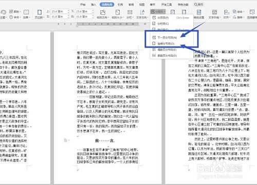 我们输入的文字,如果有很多内容,我们可以设置分节让他们有不同的显示,分节又分为新页面分节,和连续分节。