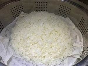 找一个大盆子,里面抹上可食用植物油,将蒸好的糯米倒入盆中。小心烫手,找一个工具辅助转移。