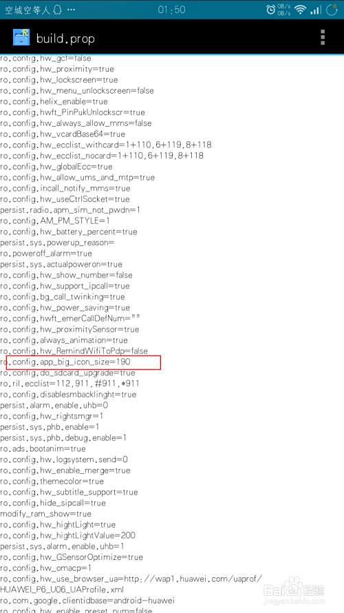 5找到 ro.config.app_big_icon_size=190参数……修改190的数值,数值越小图标越小。