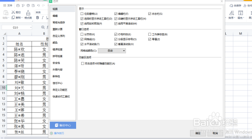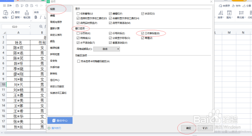 单击选择视图,在窗口选项下单击选中工作表标签,然后单击确定。