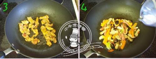 3、锅里加入少许油烧热,放入腌制好的肉片快速滑散,肉变色后,捞出备用;