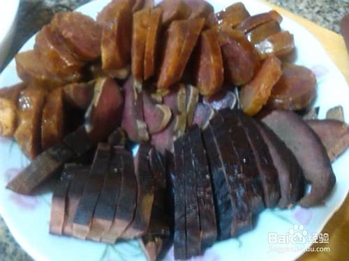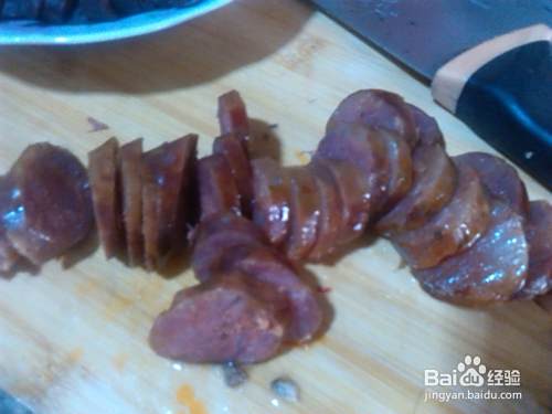 因为香肠有油,最后切好,装盘,美味的腊三珍就做好了。