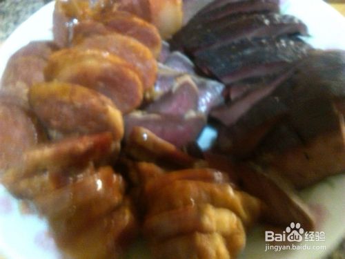 将新鲜猪肝、猪舌头用食盐腌后风干,制作成腊猪肝、腊舌头,用猪肠灌制调味好味的肉风干做成香肠;