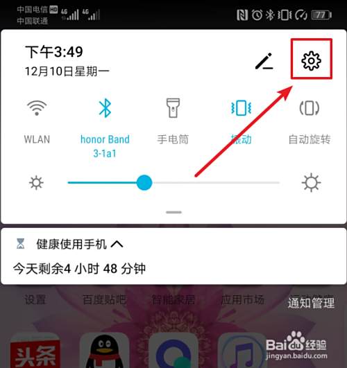 我们下滑通知栏,然后选择右上方的设置图标,进入华为手机的设置。
