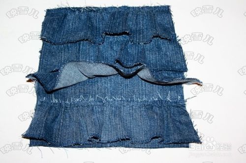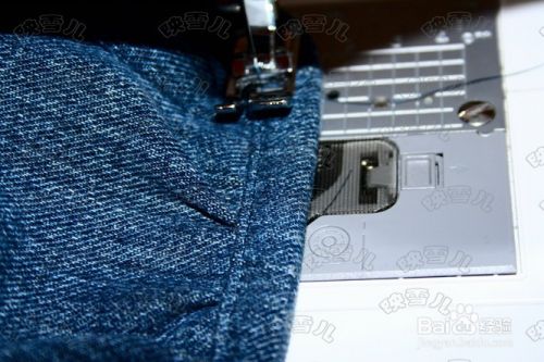 拆下牛仔裤脚用来包边袋子口。