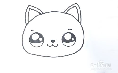 首先在纸上画上小猫咪的头部,眼睛耳朵鼻子嘴巴等。