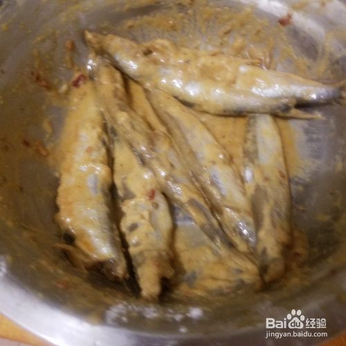 去掉鱼头,鱼肠,清洗干净,鱼籽不要拿出来,放入盐,五香粉,辣椒粉,味素,料酒,白糖腌制20分钟。