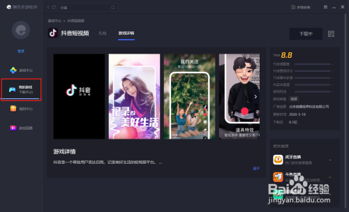 我们点击手游助手左侧的我的游戏可以看到抖音的下载进程;