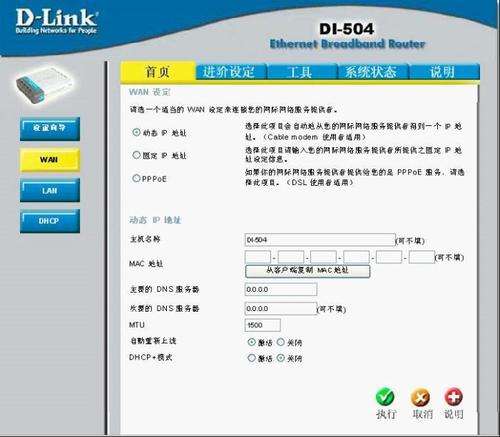 3设wan口为动态IP地址,lan口设置为默认图